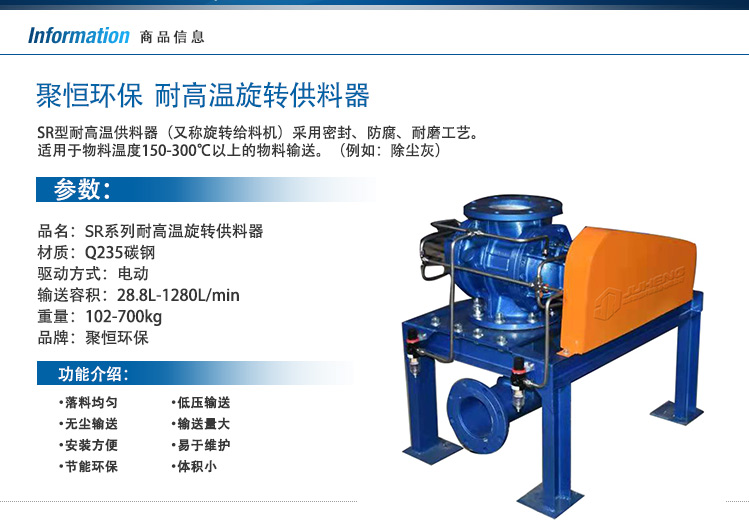 高壓型旋轉(zhuǎn)供料器:適用于粒料的低速、高壓密相氣力輸送,作為可控加料裝置使用,殼體設(shè)有排氣口、防卡料設(shè)計(jì),使用壓差0.6Mpa,使用溫度可達(dá)500℃,法蘭連接,一般使用不銹鋼材質(zhì)